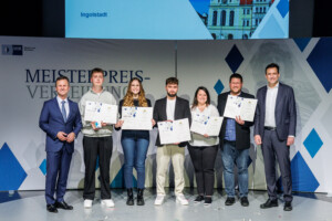 Unter den Geehrten waren auch fünf Berufsmeisterinnen und Berufsmeister aus Ingolstadt, Jeremy Marvin Krusch – Geprüfter Fachwirt im E-Commerce, Julia Binner – Geprüfte Fachwirtin für Büro- und Projektorganisation, Stefan Ebert, Geprüfter Industriemeister Metall, Nina Gollnick – Geprüfte Bilanzbuchhalterin und Florian Strasser – Geprüfter Fachwirt für Büro- und Projektorganisation.