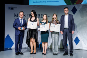 Unter den Geehrten waren auch drei Berufsmeisterinnen aus dem Landkreis Neuburg-Schrobenhausen, Paula Humbold – Geprüfte Wirtschaftsfachwirtin, Nathalie Breu – Geprüfte Immobilienfachwirtin, Sandra Barna – Geprüfte Fachwirtin für Büro- und Projektorganisation.
