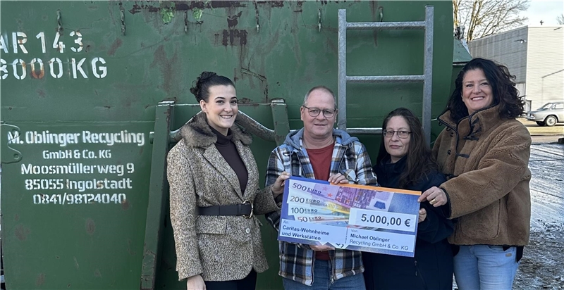 Recyclingfirma Oblinger unterstützt Caritas-Werkstätten Ingolstadt mit 5.000 Euro
