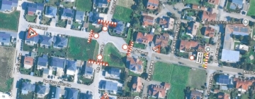 Vollsperrung des Kreuzungsbereichs Bachstraße und Am Schanzl in Stammham